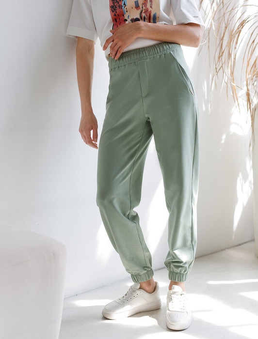 Совместные покупки Сургут Женская одежда Спортивные штаны — 22.03 Vilatte Брюки из тонкого премиального футера с эластаном D44.137 св.оливк