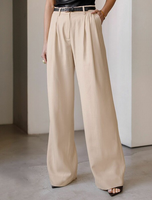 Совместные покупки Сургут Женская одежда Брюки — 22.03 Vilatte Брюки палаццо с защипами из плотного лиоцелла D24.313 овсяный