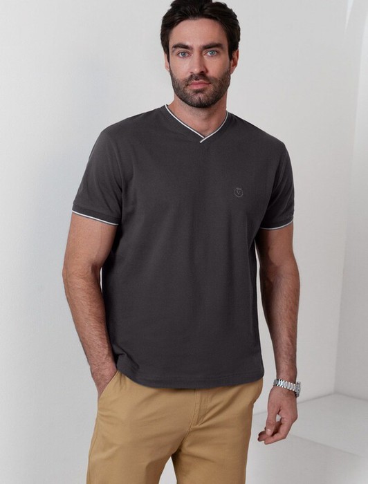 Совместные покупки Сургут Мужская одежда Футболки — 22.03 Vilatte Футболка с V-вырезом из премиального хлопка с эластаном U49.056 т