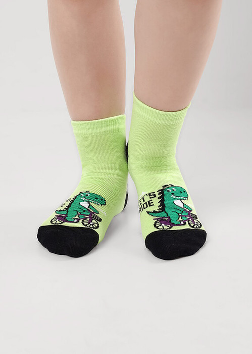 игровые носки для мальчика с динозавром на велосипеде