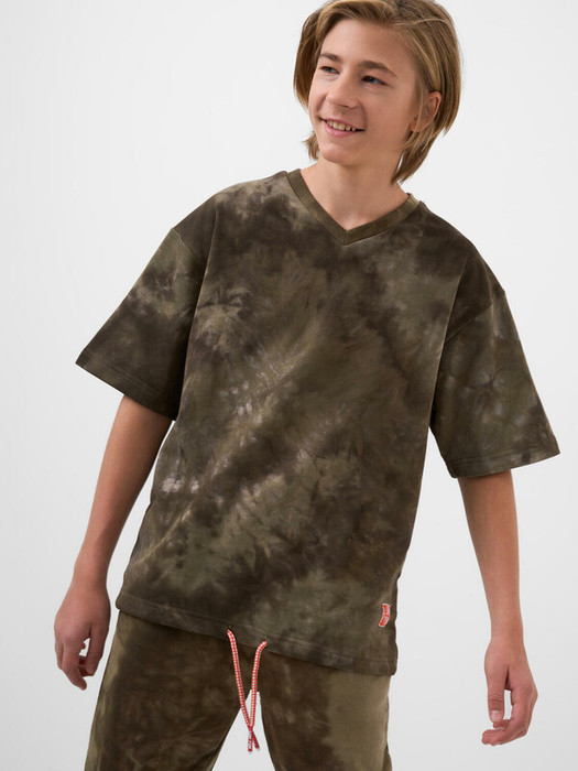 Футболка оверсайз для мальчика подростка. Модель выполнена из эластичного хлопкового трикотажа футер. Горловина обработана эластичным рибом. По низу - декоративная нашивка. Низ можно затянуть завязками.