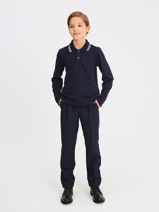 Классические брюки для мальчика из износостойкой и устойчивой к смятию костюмной поливискозы немного зауженные к низу с боковыми передними и прорезными задними карманами с клапаном, на втачном поясе с регулировкой и шлёвками. Отличный вариант на каждый день.