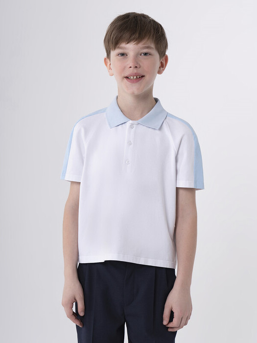 Стильный поло с коротким рукавом станет отличным вариантом для школы и на каждый день. Выполнен из смесового хлопка, что обеспечивает комфорт при носке и подходит для длительного использования. Материал приятен на ощупь, хорошо пропускает воздух и не вызывает дискомфорта даже в течение активного дня. Особенность дизайна — лампасы по бокам, которые добавляют изделию динамичный и современный вид. Такое решение делает вещь универсальной: она легко сочетается с разной одеждой, от строгих брюк до более повседневных вещей.