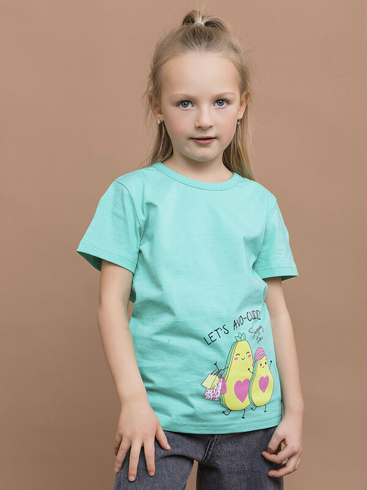 Футболка для девочки с коротким рукавом в бирюзовом цвете. Детская футболка с принтом в виде авокадо выполнена из натурального хлопка, что обеспечивает комфорт и безопасность для кожи. Подойдет для повседневной носки дома, в детском саду, на прогулки и спортивные секции.Характеристики:Материал: 100% хлопокПроизводитель: batik