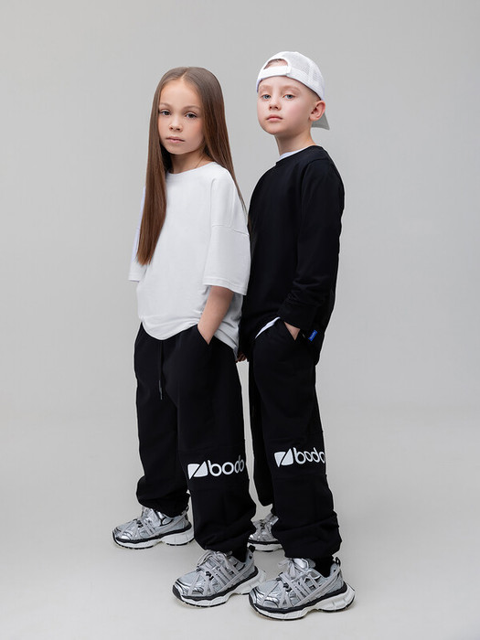 Совместные покупки Сургут Детская одежда Брюки — 24.03 Bodo Брюки с печатью на левой половине 6-626MU черный (белый)