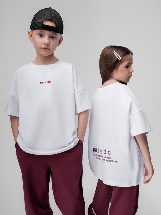 Совместные покупки Сургут Детская одежда Футболки, майки — 24.03 Bodo Футболка "С характером, конечно..." 4-483MU белый (бордовый