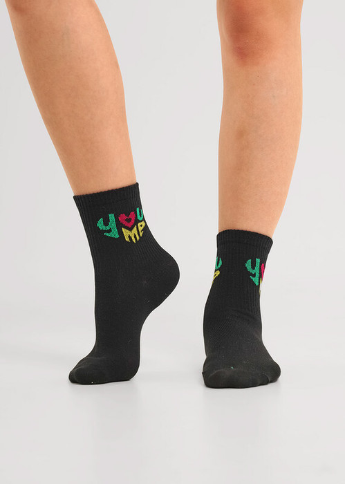ситильные удлиненные носки для девочки с яркой надписью
