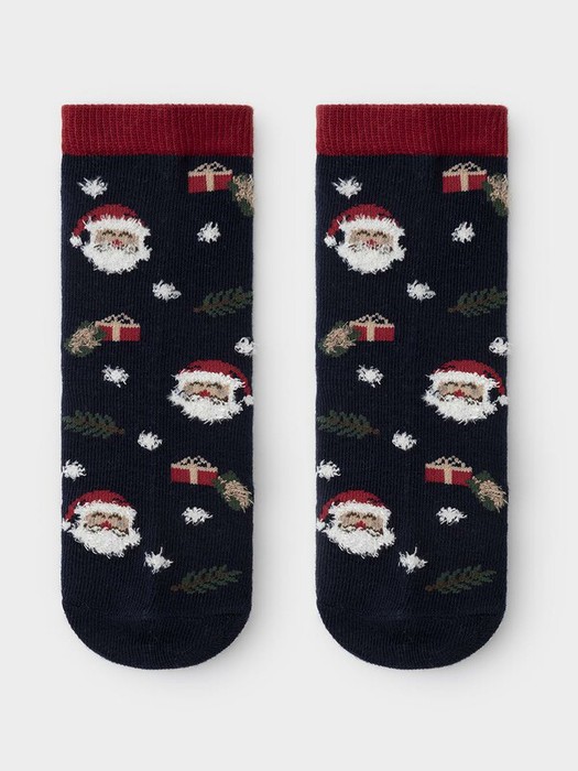 Носки длинные для мальчика с формованной пяткой и эластичной резинкой по краю. Украшены рисунком. Отлично подойдут для создания праздничных образов или как дополнение к подарку на Новый год и Рождество.  Изделие сохраняет форму и стойкий цвет после многочисленных стирок.