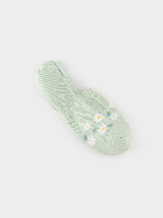 Короткие носки-следки для девочки. Эластичная резинка по краю. Украшены рисунком с ромашками.
