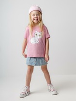Футболка из трикотажного полотна кулирного переплетения. Силуэт свободный, длина до середины бедра. Рукава короткие, горловина круглая. Дизайн футболки наверняка понравится вашей моднице!
