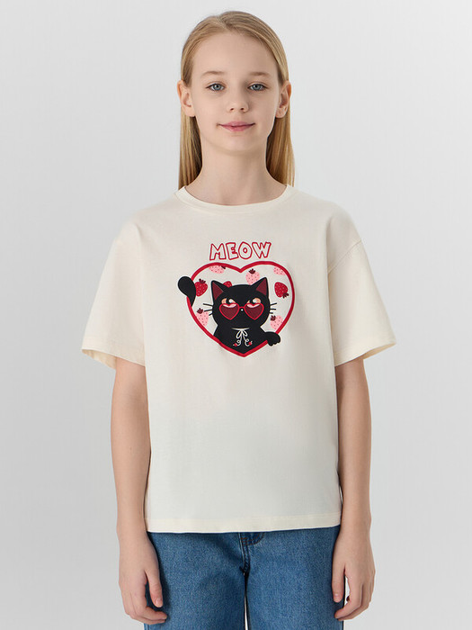 Эта стильная футболка для девочек идеально подходит для создания многослойных образов. Модель прямого кроя с короткими рукавами, спущенной линией плеча и круглой горловиной обеспечивает свободу движений и комфорт. Изделие выполнено из кулирки — мягкого трикотажного материала, который обладает гладкой поверхностью и природной воздухопроницаемостью. Этот материал прекрасно пропускает воздух, позволяя коже дышать, и обеспечивает высокий уровень комфорта, не стесняя движений. Кулирка также хорошо держит форму и сохраняет цвет даже после многочисленных стирок, что делает изделие долговечным. Такая футболка станет универсальным элементом гардероба, подходящим для любого сезона.