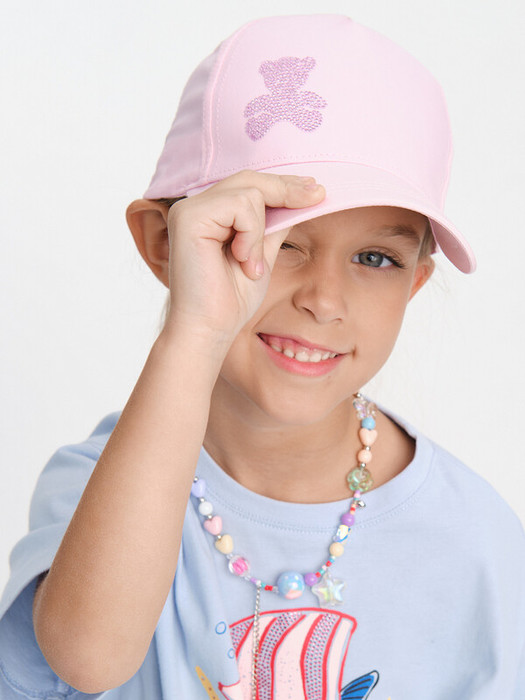 Кепка детская бейсболка декорирована мишкой, полностью выложенным стразами. Эта яркая деталь придаст образу вашей дочери особый шарм и индивидуальность, а малышке понравится выделяться среди других.