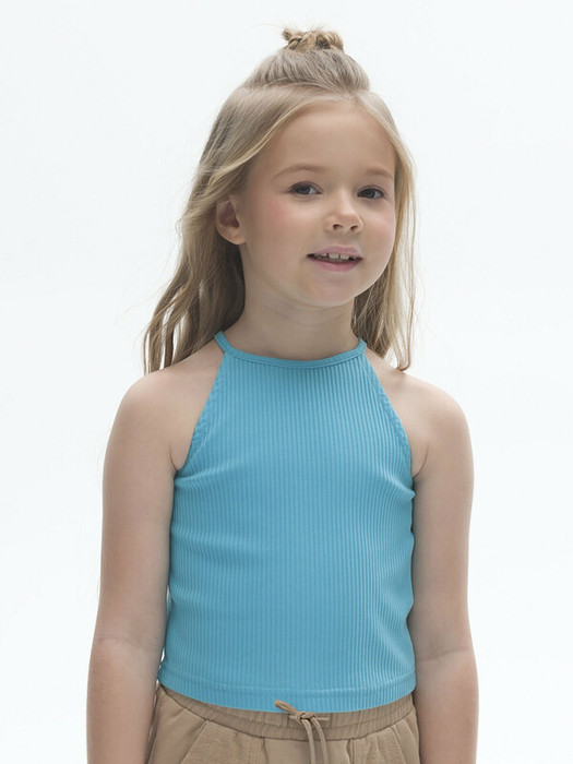 Укороченный топ-халтер из модной ткани в рубчик для девочки. В составе преобладают хлопок и вискоза – модель мягкая, приятная на ощупь и комфортная для кожи ребёнка. Эластан помогает изделию не терять форму. По горловине завязка, с её помощью можно регулировать высоту горловины и посадку топа. Топ-халтер - мастхэв этого лета. Модель подчёркивают красоту открытых плеч, рук и спины. Вырез под горло даёт дополнительный акцент на плечи и удлиняет шею. Для самых модных девочек. Сочетается с любыми объемными низами.