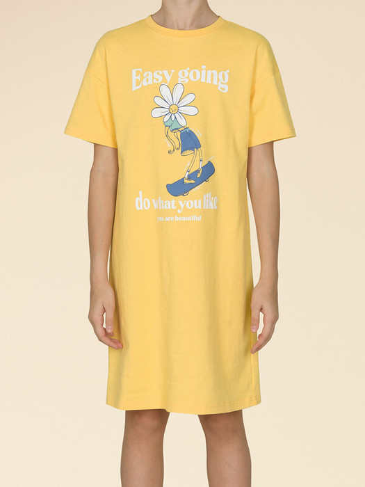 Стильная и уютная ночная сорочка для девочки, модель актуального жёлтого цвета. В составе ткани 100% хлопка — идеально для детской одежды! Модель приятна на ощупь, прекрасно пропускает воздух, позволяя коже ребёнка дышать. При этом в ночной рубашке из хлопка ребёнку будет уютно, даже если он сбросит одеяло. Всё это обеспечивает комфортный и качественный сон. Сорочка для девочки свободная, плечо немного спущено, рукава широкие — в ней очень удобно спать. Отделка горловины из эластичной рибаны — она не растягивается, ребёнку удобно надевать и снимать рубашку. Домашнее платье украшает позитивный принт в виде ромашки на скейтборде. Надписи переводятся: "лёгкая на подъём", "делай то, что тебе нравится", "ты прекрасна". В линейке представлены следующие размеры: 2 (92); 3 (98); 4 (104); 5 (110); 6 (116), 7 (122); 8 (128); 9 (134); 10 (140); 11 (146). Сорочка рубашка идеальна для сна и отдыха  дома — прекрасный выбор для вашего ребёнка! Ночная сорочка с принтом подходит для круглогодичного использования. Сорочка детская для девочки — замечательный подарок дочке, внучке, сестре на любой праздник. Выбирайте нужный размер по таблице размеров на фото. Цвет товара на экране вашего устройства может отличаться от цвета изделия вживую. Товар возврату и обмену не подлежит.