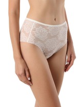Трусы слипы женские из эластичного хлопкового полотна. По переду и спинке рез с кружевными вставками. Обработка краев по талии ажурная резинка (точечный зигзаг).