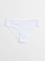 Трусы бикини женские из эластичного хлопкового полотна. Обработка краев по талии - резинка с кантом, по ноге - полуокантовка. По переду атласный бант.