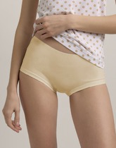 Бикини, комбинированная модель из хлопкового полотна с эластаном и эластичной сетки.На детали переда-фигурный рез, линия которого переходит на спинку.Линии реза и деталь переда декорированы узким кружевом.По талии-ажурная резинка, по ножке-полуокантовка