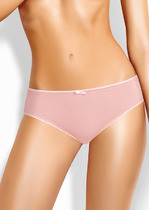 Трусы слипы женские из эластичного хлопкового полотна. Обработка краев - ажурная резинка с фестоном. По переду атласный бант.