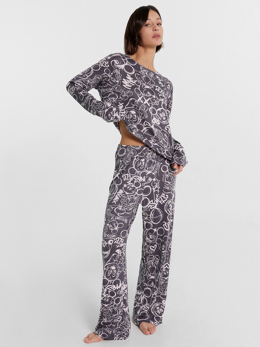 Хлопковый домашний комплект для женщин. Состоит из расслабленного лонгслива и брюк свободного силуэта. Лонгслив с круглым вырезом, длинными рукавами. Брюки прямые, с эластичной тесьмой в поясе. Рекомендуем для крепких снов и домашних дел!