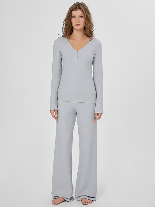 Домашняя пижама для женщин, состоящая из джемпера и брюк, создает гармоничный образ для уютного отдыха. Приталенный джемпер с изящным V-образным вырезом мягко подчеркивает силуэт, а длинные рукава обеспечивают комфорт. Элегантную деталь добавляет застежка на кнопки по переду, которая не только функциональна, но и становится стильным акцентом.