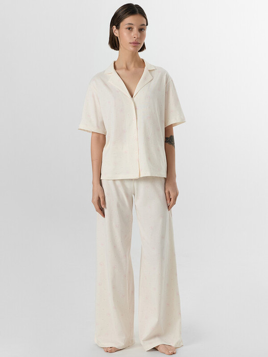 Оба предмета пижамы выполнены из натурального хлопка, который не вызывает раздражения и обеспечивает комфортную температуру тела ночью. Комплект подходит для ежедневного использования — ткань выдерживаетстирки, не теряя мягкости и цвета.