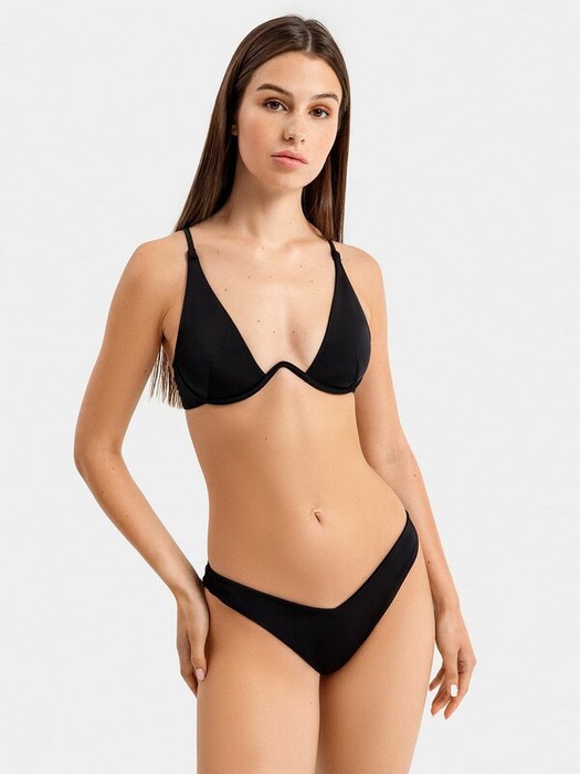 Ластовица, фронтальная и задняя части на подкладке. Верхний срез окантован отделочным полотном. Ножки обработаны обтачным швом с вложенной резиновой тесьмой внутри.