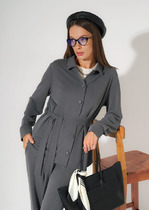 Блузка из вискозного трикотажного полотна, свободного кроя. Длинный втачной рукав,внизу манжет с пуговицей. Отложной воротник, спереди цельнокроеная планка с застежкой на пуговицы, нашивка. На спинке кокетка. По талии съёмный пояс. Фигурный низ изделия.