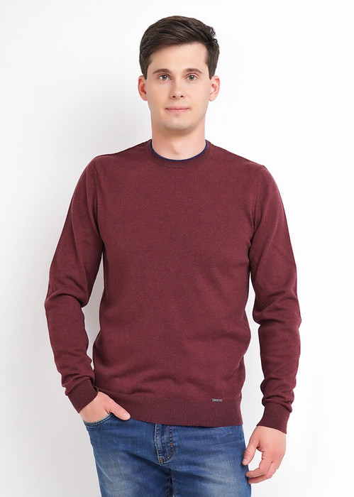 Мужской вязаный джемпер с круглым вырезом горловины в базовом ассортименте. Модель завершенная благодаря двойной контрастной горловине, декоративной полосатой тесьме и провязаной обтачке по спинке. Модель дополняет металлофурнитура по низу.