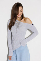 Горловина круглой формы, с отложным воротником из довяза. Плечо спущено, пройма углублена. Рукав длинный обьемный с отрезной манжетой по низу. Пояс отрезной из рибаны.