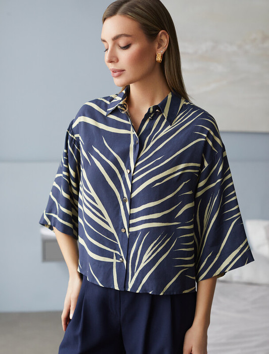 27.03 Vilatte Блузка из вискозы с лиоцеллом D29.263 темно-синий