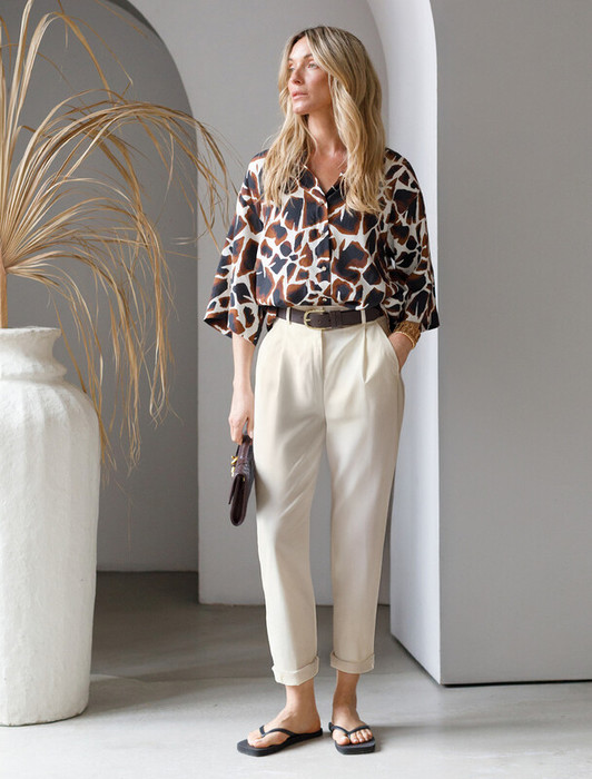 Брюки-бананы в стиле casual выполненны из хлопкового твила. Натуральный материал ткани обеспечивает высокий уровень комфорта, отличную гигроскопичность и воздухопроницаемость. Эластан в составе изделия минимизрует деформацию модели и продлевает срок носки. Брюки дополнены защипами и боковыми карманами. Зауженный силуэт подчеркивает достоинства и скрывает недостатки фигуры.