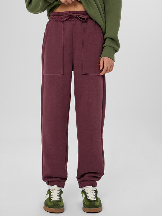 Посадка средняя. Пояс отрезной, внутрь пояса застрочена эластичная тесьма и шнур. По поясу идут две декоративные строчки.  Боковые швы перенесены вперед. На передних деталях накладные карманы с наклонным входом от боковых швов. По низу изделия внутрь застрочена эластичная тесьма.