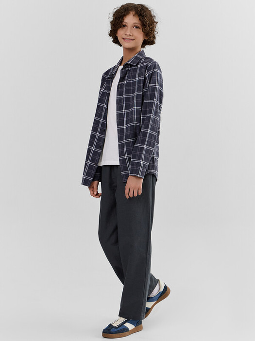 Брюки для мальчиков из ткани. Брюки длинные с классической линией талии. Силуэт прямой, брюки заужены немного к низу. Пояс цельнокроеный. Верхний срез брюк