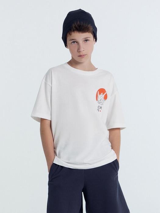 Футболка свободного силуэта из хлопковой трикотажной кулирки. Длина до середины бедер. Рукава короткие. Горловина круглой формы, с  обтачкой из рибаны. Спущенная линия плеча дарит особый комфорт. Стильно и удобно!