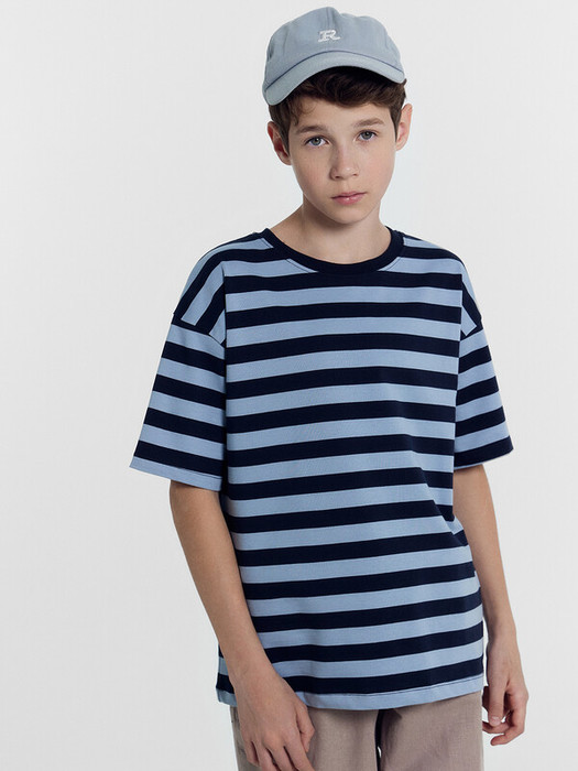 Футболка свободного силуэта. Перед и спинка цельнокроенные. Длина до середины бедра. Рукав втачной, короткий, линия плеча спущена. Горловина круглой формы, обтачка из трикотажного полотна рибаны 2*2. Низ изделия и рукваов обработан на 2-х игольной плоскошовной машине швом в подгибку.