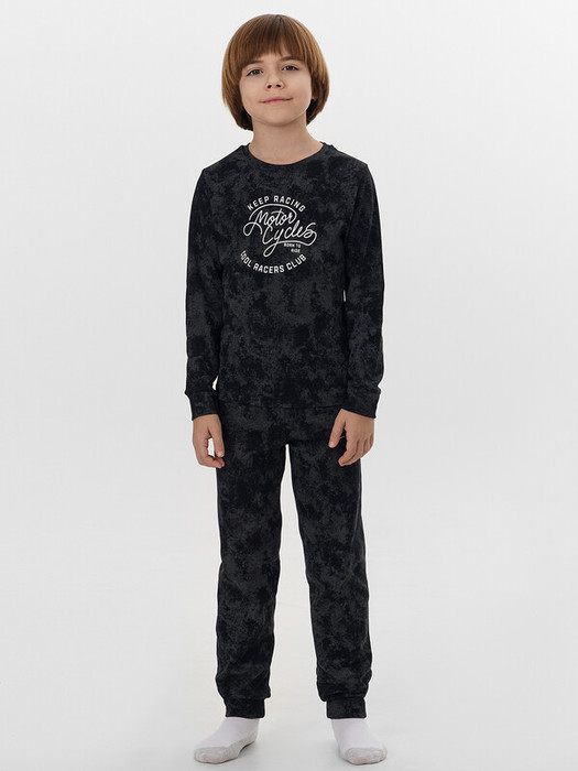 Пижама для мальчиков с надписью "Be wild. Be free" ("Будь диким. Будь свободным") — это комплект для смелых и активных ребят. В набор входит свободный джемпер и прямые брюки, сшитые из мягкой дышащей ткани, которая не раздражает кожу даже во время сна.