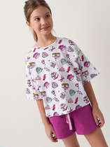 Этот домашний комплект для мальчиков — идеальное сочетание удобства, практичности и мягкости натуральных тканей. Он включает футболку и прямые брюки, выполненные из хлопка, который обеспечивает хорошую воздухопроницаемость и мягкость, особенно важные для активных детей. Футболка имеет классический круглый вырез с усиленной обтачкой из рибаны — она помогает сохранять форму даже после многократных стирок. Короткие рукава и низ футболки обработаны швом вподгибку, что придает изделию аккуратный и законченный вид. Брюки дополнены эластичным поясом, который мягко фиксируется на талии, не создавая дискомфорта. Прямой крой обеспечивает свободу движений, а застроченный низ делает их устойчивыми к износу. Комплект не только хорошо сидит, но и легко надевается — отличный выбор для дома, игр, сна или отдыха. Простота исполнения и качественные детали делают его универсальным вариантом на каждый день.