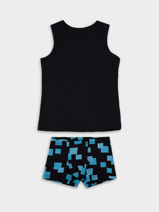 Бельевой комплект для мальчиков, состоящий из нежного и приятного к телу хлопкового полотна. Майка полуприлегающая, с круглым вырезом. Трусы-боксеры без боковых швов и эластичной тесьмой в поясе. Рекомендуем!