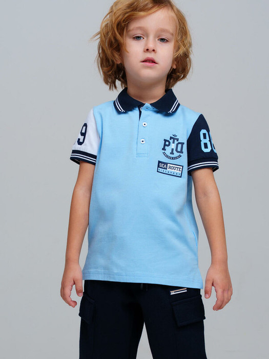 Футболка-поло детская для мальчика. Поло из качественного и приятного на ощупь трикотажа пике. Модель с высоким содержанием хлопка 95%. Благодаря наличию эластана в составе ткани изделие проще в уходе и держит форму. Модель выполнена из качественного и приятного на ощупь трикотажа.