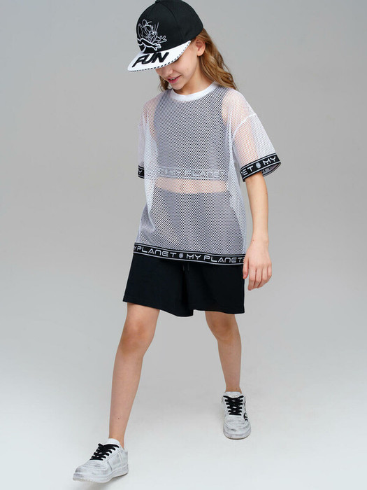 Костюм для девочки подростка. Комплект: оверсайз футболка, шорты с высоким содержанием хлопка 95%. Благодаря наличию эластана в составе ткани изделие проще в уходе и держит форму. Шорты на резинке со шнурком. Боковые карманы. Декор из сетки. Модель выполнена из качественного и приятного на ощупь трикотажа. Майка пришита.