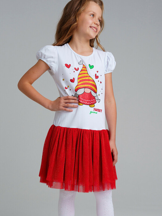 Платье трикотажное с юбкой из мягкой сетки. Верх платья из трикотажа с высоким содержанием хлопка 95%. Благодаря наличию 5% эластана в составе ткани изделие держит форму.