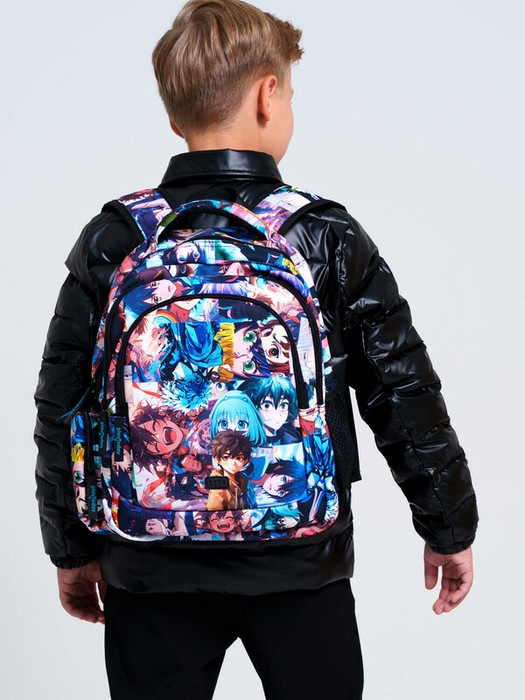 Школьный рюкзак для мальчика подростка. Прямые широкие регулируемые лямки с мягкими вкладками и сетчатым покрытием для улучшения вентиляции, 3 основных отделения на молнии, 2 боковых кармана: сетчатый и на молнии. Внутри: 1 отсек: карман на молнии, открытые карманы для канцелярии. 2 отсек: без карманов, 3 отсек: карман для папок, карман на молнии, 2 кармана без замка, карабин для крепления пропуска/пенала/ключей, усиленная спинка, дно и верхняя ручка, спинка и обратная часть плечевых ремней - сетчатые, для улучшенной вентиляции, светоотражающие элементы на переднем кармане и плечевых ремнях. Рюкзак в школу можно дополнить мешком для обуви и пеналом в том же дизайне.