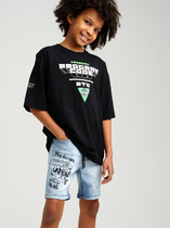 Джинсовые шорты для девочки подростка. Шорты свободного силуэта. Пояс с внутренней утяжкой. Застежка на молнию и болт. Функциональные карманы. Трендовые элементы потертости и дыры.