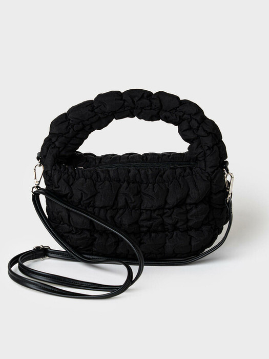 Дутая текстильная круглая сумка кросс-боди для девочки-подростка. Сумка имеет регулируемый плечевой ремень. Основное отделение на молнии.  Внутри есть два кармана. Один из них на молнии. Параметры: высота - 14 см, ширина -24 см, глубина - 8 см.