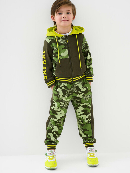 Толстовка детская на молнии для мальчика. Выполнена из хлопкового футера без начеса. Капюшон. Спереди два кармана. Низ изделия и рукава оформлены эластичными резинками.