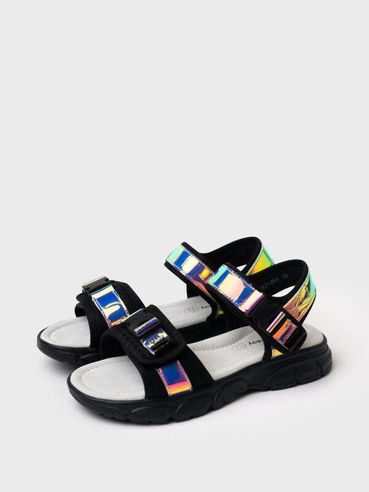 Сандалии спортивного стиля для девочки подростка. Босоножки выполнены из дышащего текстиля и зеркальной искусственной кожи. Удобные ремни с липучками позволяют регулировать обувь на любой подъем. Текстильная подкладка c высоким содержанием хлопка 80% обладает высокой гигроскопичностью. Стелька из натуральной кожи с анатомическим элементом поддерживает свод стопы в правильном положении. Модель имеет гибкую и легкую подошва из ТПР с противоскользящим протектором.