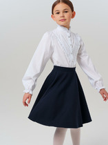 Очаровательная блузка для девочки. Выполнена из качественного материала. Модель приталенного силуэта, с длинными рукавами, воротником стойкой. Кокетка выполнена из эластичного гипюра.Прекрасный вариант для школьных будней, так и для торжественных случаев. Производство: Радуга-дети Материал: Вискозное полотно, Гипюр. Состав: 93% вис,7% эл, гипюр-100% п/э.