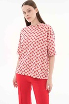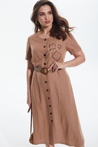 Платье свободного силуэта из струящейся плательной ткани. Изделие по линии талии на резинке, на юбке-сборка. V-образный вырез горловины обработан отложным воротником на стойке. Втачной длинный рукав с манжетой, застегивающейся на пуговицы.