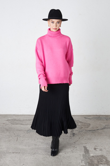 Юбка плиссе, расширенная книзу с поясом. Изделие выполнено из мягкой структурированной пряжи.