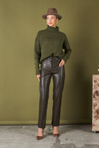 Джемпер прилегающего силуэта из эластичного полотна в рубчик. V-образный вырез горловины и линия проймы оформлены бейками.
